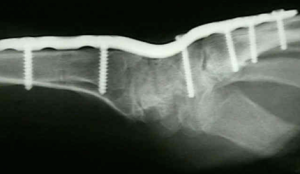 This implant, called the Amandys, is a large pyrocarbon pebble that acts as a “spacer” device to maintain wrist joint height and soft-tissue tension, thereby preserving wrist motion and treating painful arthritis. Wrist motion can be relatively well preserved compared to fusion (see below).